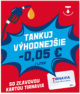Zaregistruj sa a zabezpeč si online kartu TIRNAVIA, s ktorou získaš akciovú zľavu 0,050 €/l na všetky palivá v celej sieti našich prevádzok ČS Trnavská pumpa v Trnave a v…
